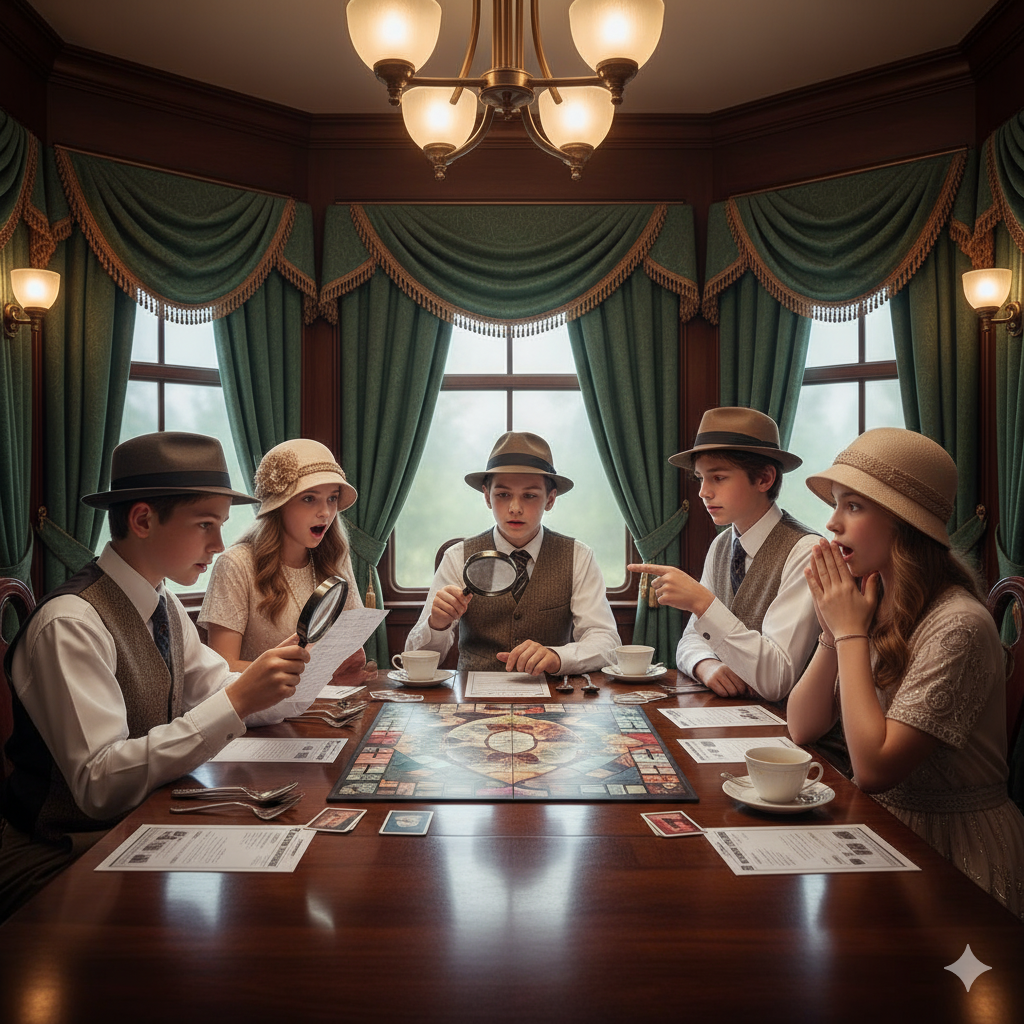 Train mysteries are timeless because the setting traps everyone together. There’s no escape, no excuses, and everyone’s story intertwines. The close quarters make it easy for even small groups to feel immersed, and the visual style—velvet seats, polished brass, and ticking clocks—sells the illusion.