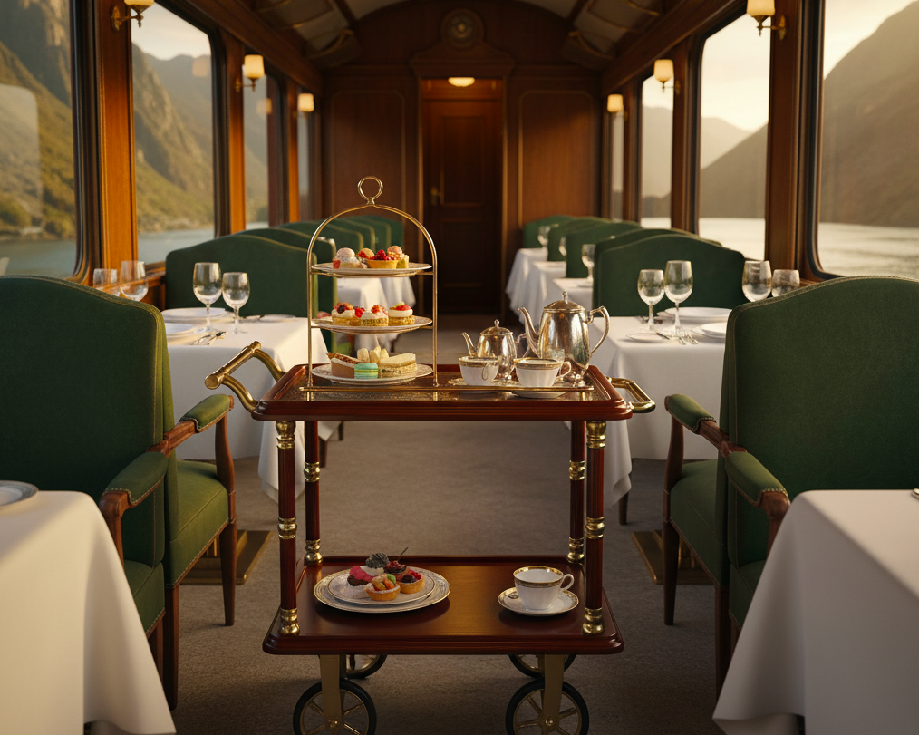 If you’ve ever looked at an old photo of a luxury train meal, you know elegance was the expectation. Linen napkins, silver trays, and neatly folded menus go a long way.